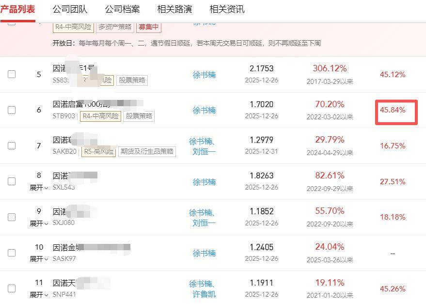 此外,平方和的指增产品收益基本也在50-70%,2025年首次跻身百亿私募行列;世纪前沿指增也几乎在50%左右,但是量化对冲策略收益不足15%,基准都没跑赢;因诺也是,指增能做到45%,但是CTA、衍生品策略等均不足20%。