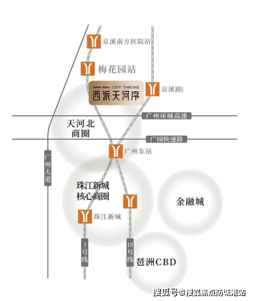 地铁交通:项目紧邻地铁3号线号线贯穿广州南北,北起机场北,南至番禺广场,途经珠江新城、体育西路等核心商圈,乘坐地铁5站即可直达珠江新城,通勤时间短,效率高;周边还有正在建设的18号线号线为广州快速地铁线站到琶洲,进一步提升交通便捷度,实现快速通达广州各大核心区域。