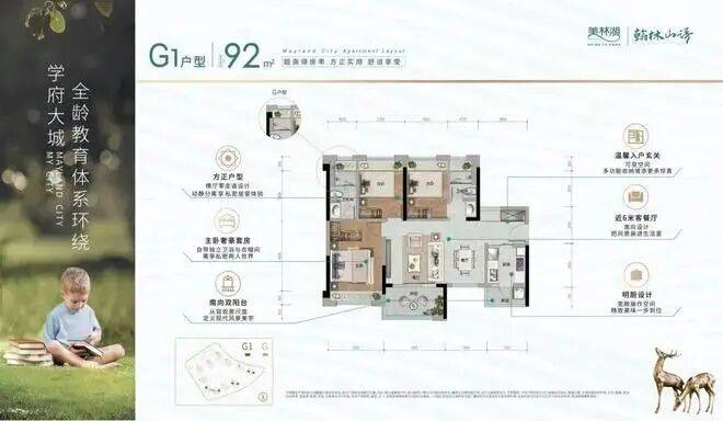 产品面积涵盖73-95㎡二房至三房,2梯6户设计,组团内设有肉菜市场、幼儿园、公交首末站等公共配套,与已开学的美林湖九年制公立学校一路之隔。